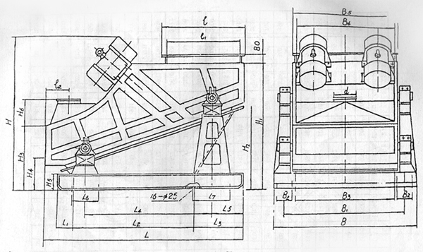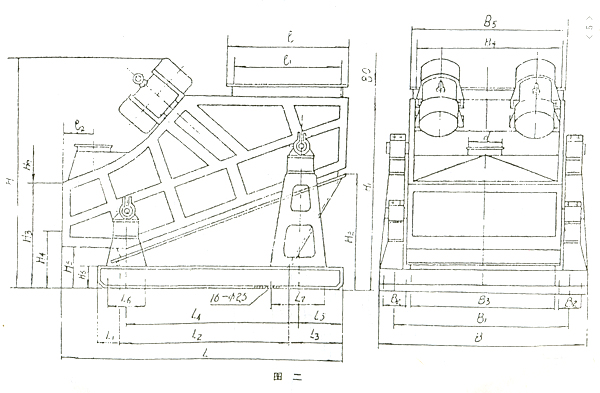 ZSG系列高效重型振動(dòng)篩的基礎(chǔ)尺寸見(jiàn)圖三、表四。